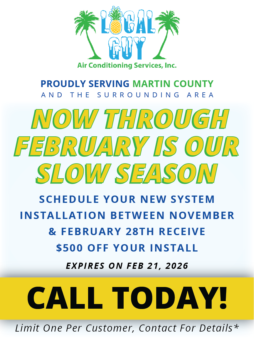 Friends, neighbors, and Martin County family—November through January is our slow season in the AC world. Business dips, but our commitment to our employees and their families doesn’t. We want to keep our hardworking team busy, and instead of cutting back hours, we’d rather give YOU a deal.